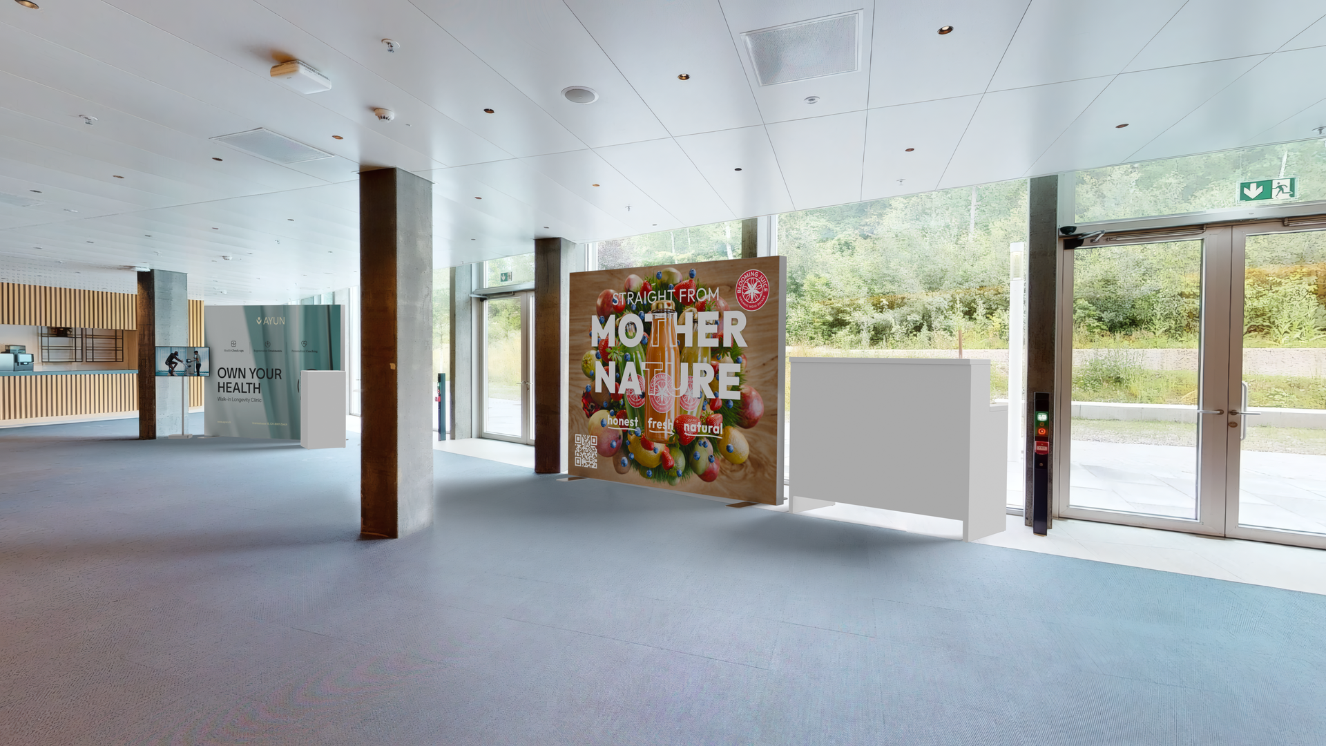 My work included creating full booth designs and original imagery, particularly for Blooming Juice, which had no existing brand guidelines. The visuals for all three booths were then translated into 3D models and perspective-imposed onto 2D photography of the space, providing the client with a clear, immersive preview of how the foyer would look during the event.