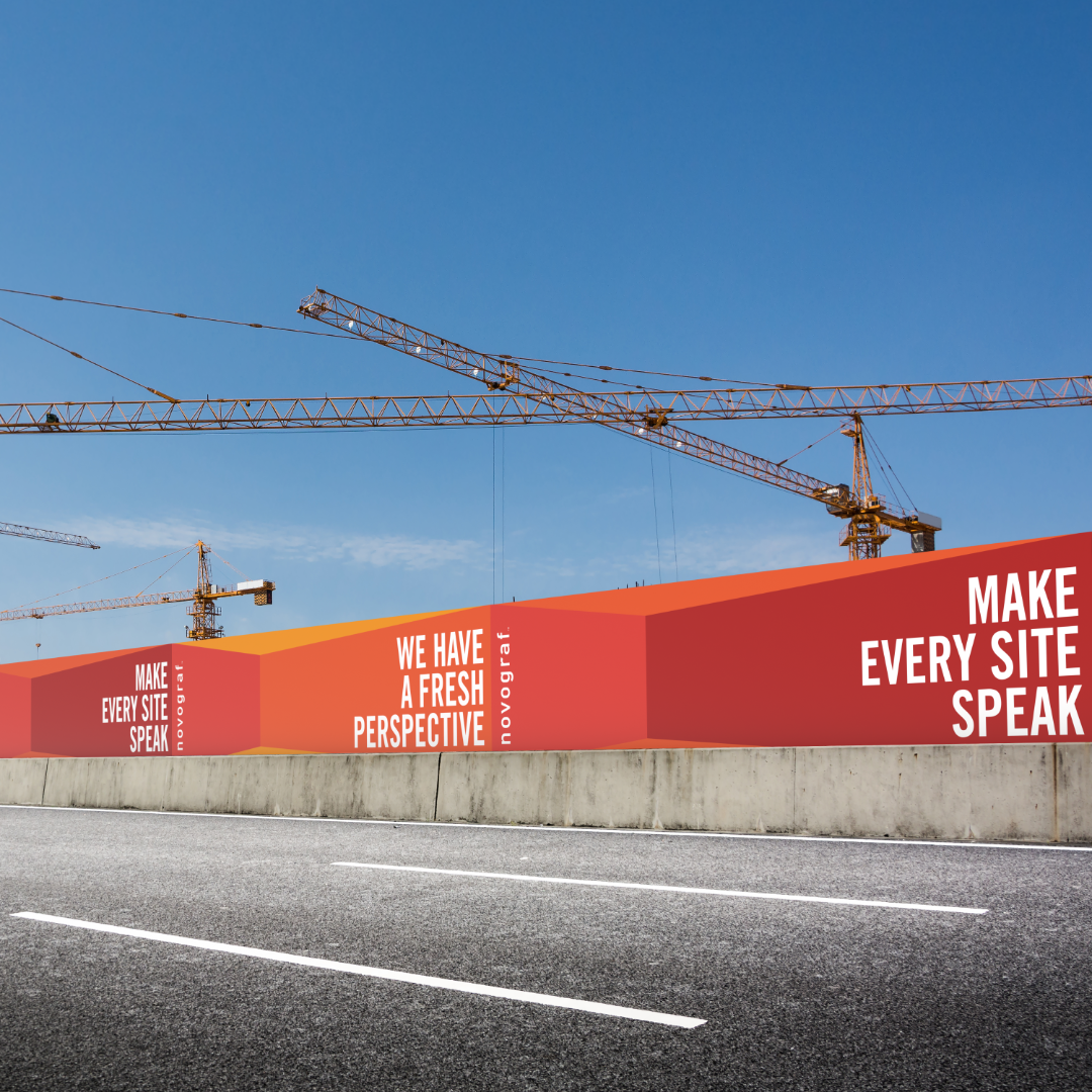 Created 3D renders composited into real photography to demonstrate Novograf’s hoarding print capabilities in a visually striking and realistic way.